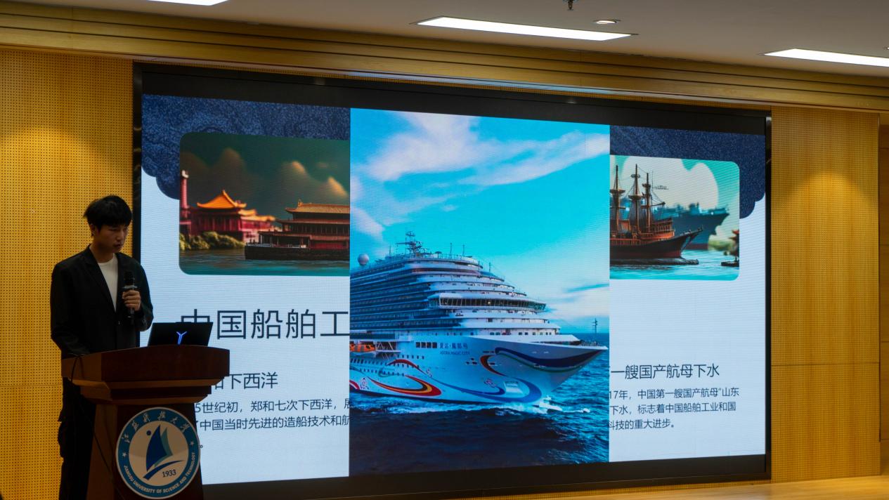 在“讲好江科大的船舶故事”的决赛现场,六个从初赛脱颖而出的团支部以微课形式展开精彩角逐。各团支部代表借助精心制作的PPT,将校史长河中的船舶印记娓娓道来——既有新中国造船业拓荒者攻坚克难的创业传奇,也有当代校友率领科研团队突破“卡脖子”技术的攻坚纪实。从万吨巨轮的设计蓝图到深海探测的前沿装备,从老教授实验室里彻夜不熄的灯光到青年学子在船舶创新大赛中的崭露头角,一个个鲜活故事通过声情并茂的讲述跃然眼前。选手们用扎实的史料、细腻的笔触,立体勾勒出江科大人“深蓝报国”的精神图谱,将船舶工匠们薪火相传的奋斗密码,深深镌刻在每位观众心中。