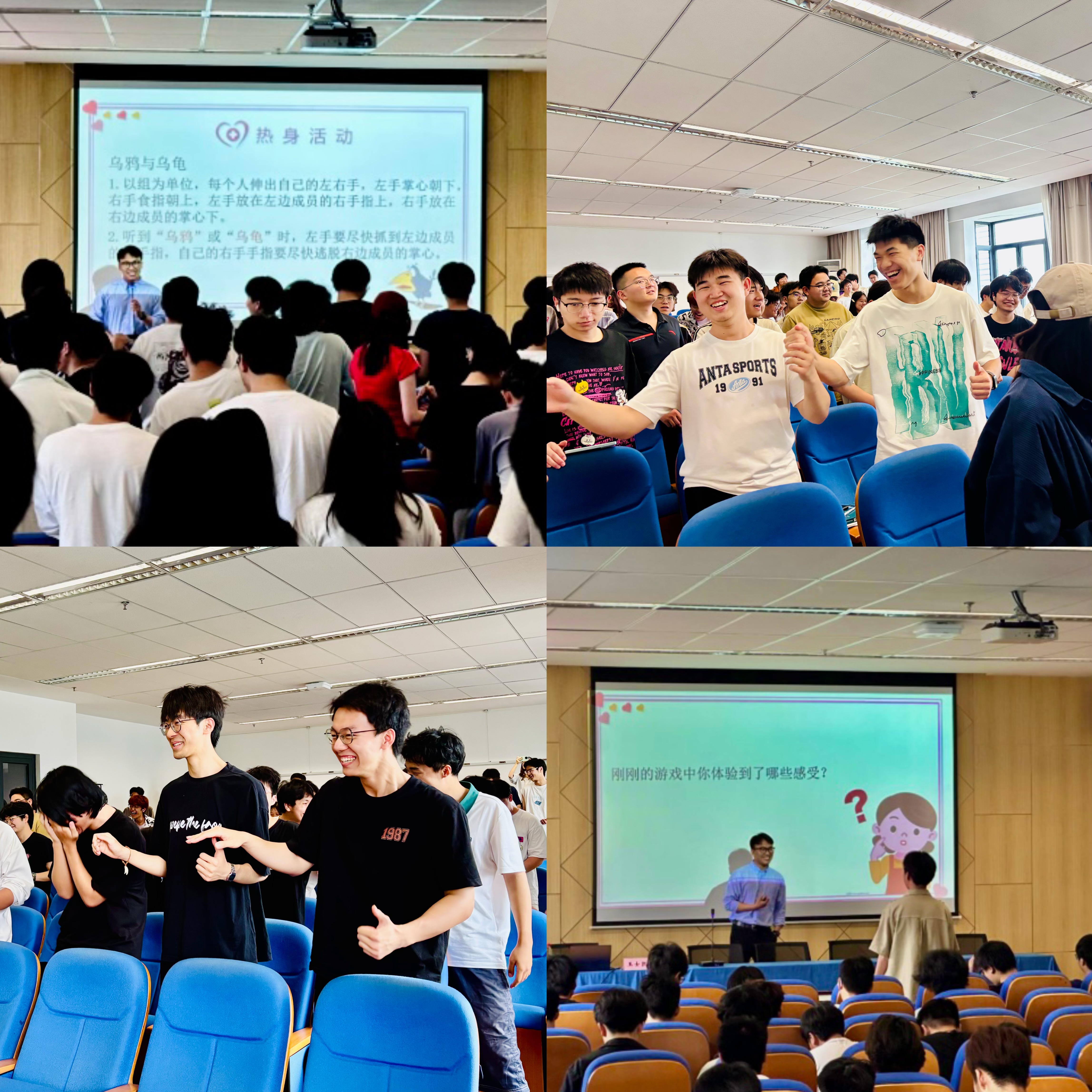 讲座伊始,王老师通过 “乌鸦与乌龟” 这一热身游戏迅速活跃现场气氛。学生们分组互动,在游戏过程中感受紧张与刺激。