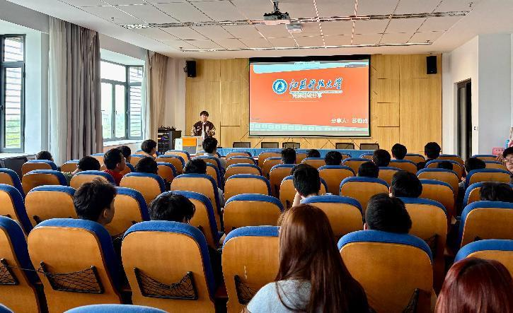 之后,苏傲成同学则以学科竞赛为切入点,详细介绍了竞赛的参赛流程与备赛策略。他以自己参加的挑战杯为例,从选题立意、团队分工、技术方案设计到答辩呈现进行了复盘,在案例分享环节,他展示了获奖项目的技术路线图与成果展示视频,生动诠释了“从理论到实践”的转化过程。他鼓励研一、研二同学:“竞赛不仅是荣誉的角逐,更是解决问题能力的锤炼。”