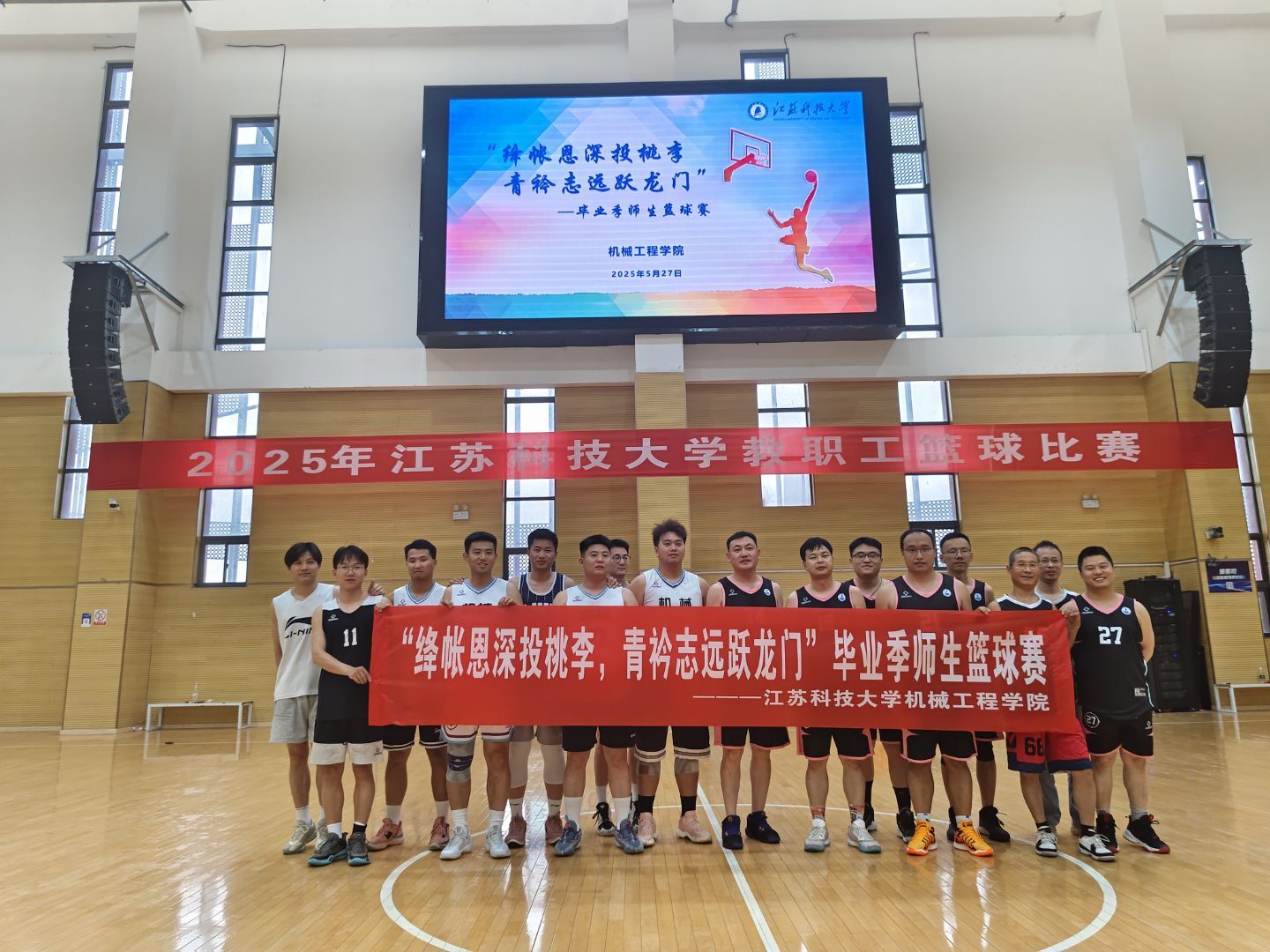 为了给毕业生留下难忘的校园记忆,同时传递师生情谊与青春热血,激励在校生传承拼搏精神。5月27日,由牛彩网 组织主办,以“绛帐恩深投桃李,青衿志远跃龙门”为主题,在校体育馆篮球场举办毕业季师生篮球友谊赛。本次活动聚集了牛彩网 的教师代表和毕业生代表。