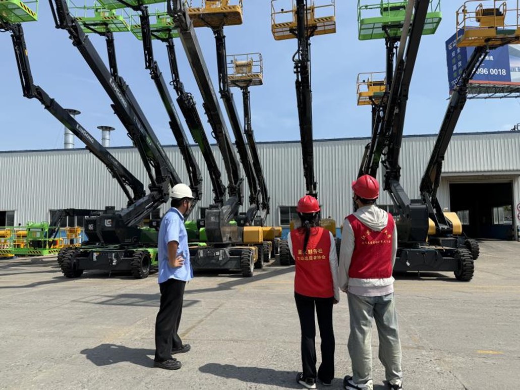 活动期间,实践团在企业技术主管引领下走进高空车的装配生产线。该线采用模块化装配模式,将高空车划分为动力模块、臂架模块、控制系统模块等8大单元,各单元并行装配后进行总装。实践团成员就生产过程中的相关问题与技术主管现场进行深入的交流。