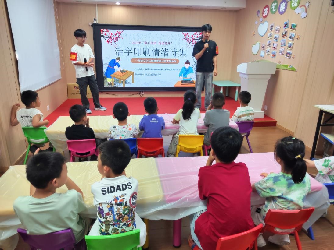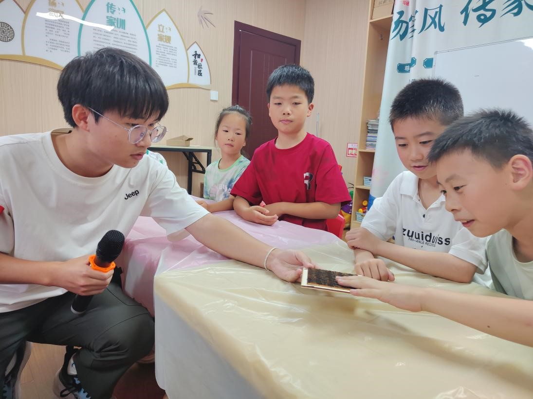 7月3日,实践团成员们为孩子们讲述了活字印刷术的起源和历史,当孩子们听到毕昇发明活字印刷术的故事时,眼中充满了好奇与敬佩。