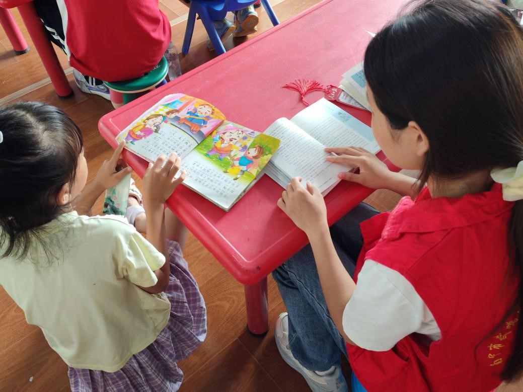 图为李菲同学和小朋友们阅读分享