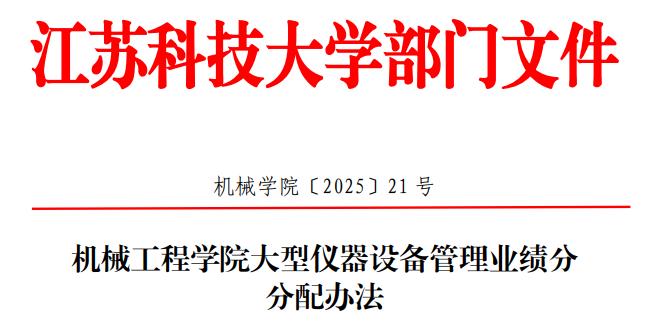 牛彩网 制定并发布《牛彩网 大型仪器设备管理业绩分分配办法》(机械牛彩网 〔2025〕21号),明确了大型仪器设备管理的工作内容、业绩分来源与分配原则。