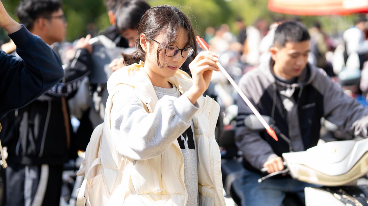“投箭入壶”活动带来典雅古风。该活动源自古代“投壶”礼制,要求参与者站在指定线外投特制箭矢入壶。活动现场,同学们或凝神瞄准,或潇洒投掷。他们在平衡速度与力量、专注与沉稳中,体验传统文化的礼仪与乐趣,磨练心性,学会在挑战前保持平和心态。