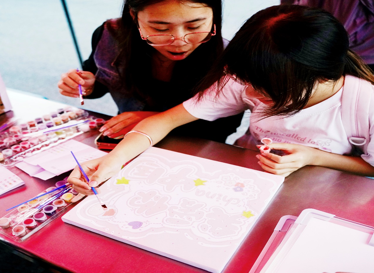 “执笔共绘锦绣山河”献画区则采取集体共创方式,同学们通过数字油画接力绘制,共同完成一幅象征祖国壮丽河山的宏伟画卷,以艺术语言表达对祖国的热爱与祝福。