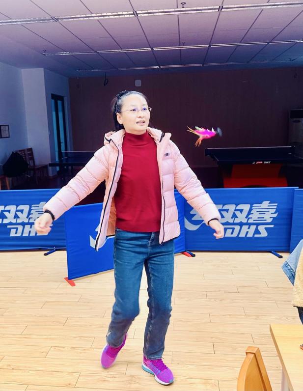 个人项目赛场率先掀起热潮。飞镖区内,参赛教职工凝神屏息,平日里握惯了粉笔与扳手的手此刻稳稳握住镖杆,每一次精准投掷均引来阵阵喝彩;踢毽子赛场内,彩色毽子在教职工脚尖轻盈跳跃,老教师身手不减当年,青年教师则身手矫健,计数声与欢呼声交织成一幅灵动画面。