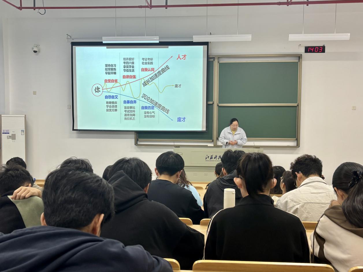 活动伊始,包老师首先聚焦“角色转型”核心,对比分析了大学生活与高中生活的本质差异。她强调,步入大学后,不仅要从被动接受的学习模式转向主动探索的自主学习,还需同步调整生活节奏与社交方式,以适应多元开放的校园环境。包老师寄语在场新生,大学生活是人生全新的起点,每一次选择都将塑造不同的成长轨迹,鼓励大家以积极心态拥抱变化、规划未来。