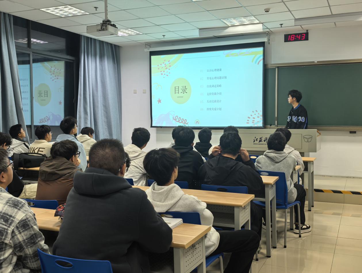 为提升班级同学心理健康意识,助力大家更好地适应大学生活,2025年11月12日晚,25级机械7班于文理大楼210教室开展了心理健康教育主题班会。