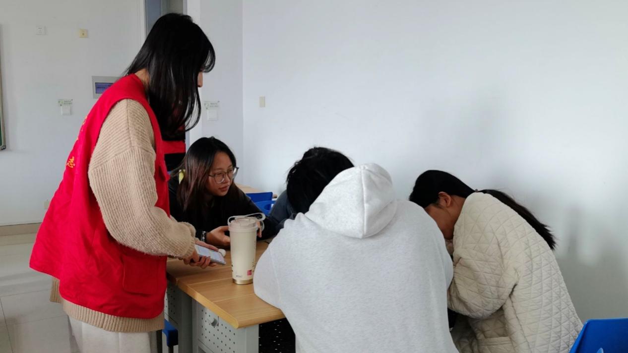 创作环节,志愿者们用PPT展示拼豆图纸为同学们提供参考,同时为大家留下自由创作的空间,有的同学复刻出具有纪念意义的冬日元素,还有人设计了专属的暖心图案,准备送给老师,以表达心中的感激与祝福。在整个创作过程中,志愿者们始终穿梭在同学们中间,耐心地协助同学们解决拼豆过程中遇到的各种小难题,让大家的创作过程既轻松又顺畅。