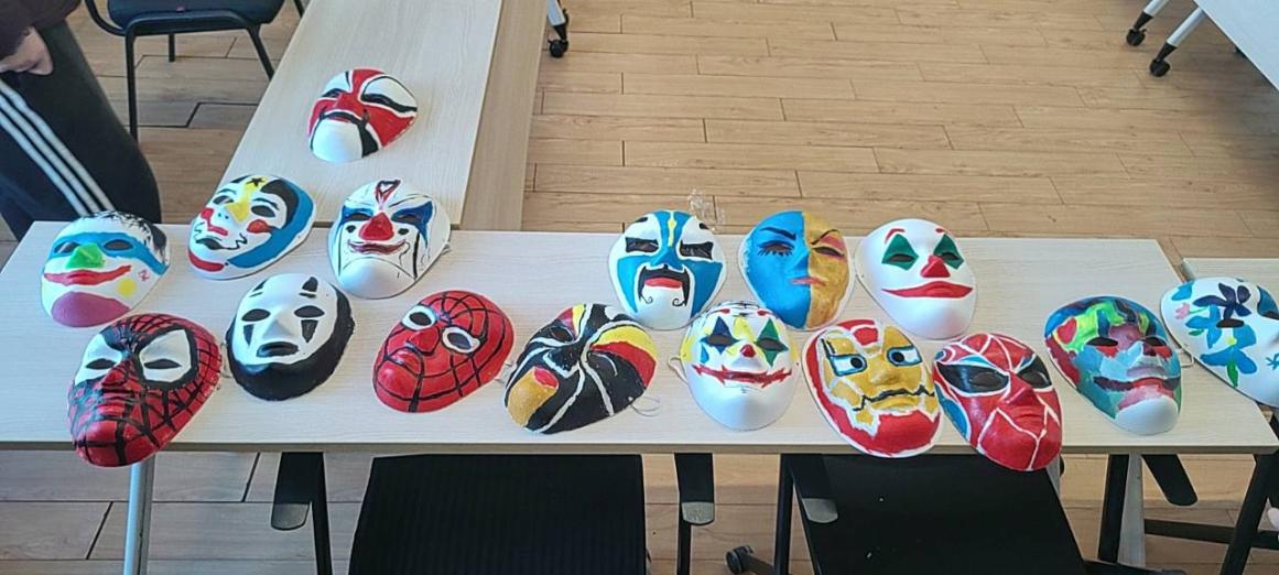 在随后的实践环节中,大家领取了空白面具和颜料画笔,开始创作属于自己的“情绪脸谱”。同学们充分发挥想象力,将抽象的内心感受转化为具体的线条与色彩。有的同学用明亮的黄色和舒展的线条描绘出“喜悦”,有的用深沉的蓝色和交错的笔触勾勒出“忧郁”,还有的同学将多种情绪融合在一张脸谱上,展现出情绪的复杂与交织。活动现场气氛轻松而专注,充满了艺术创作的气息。