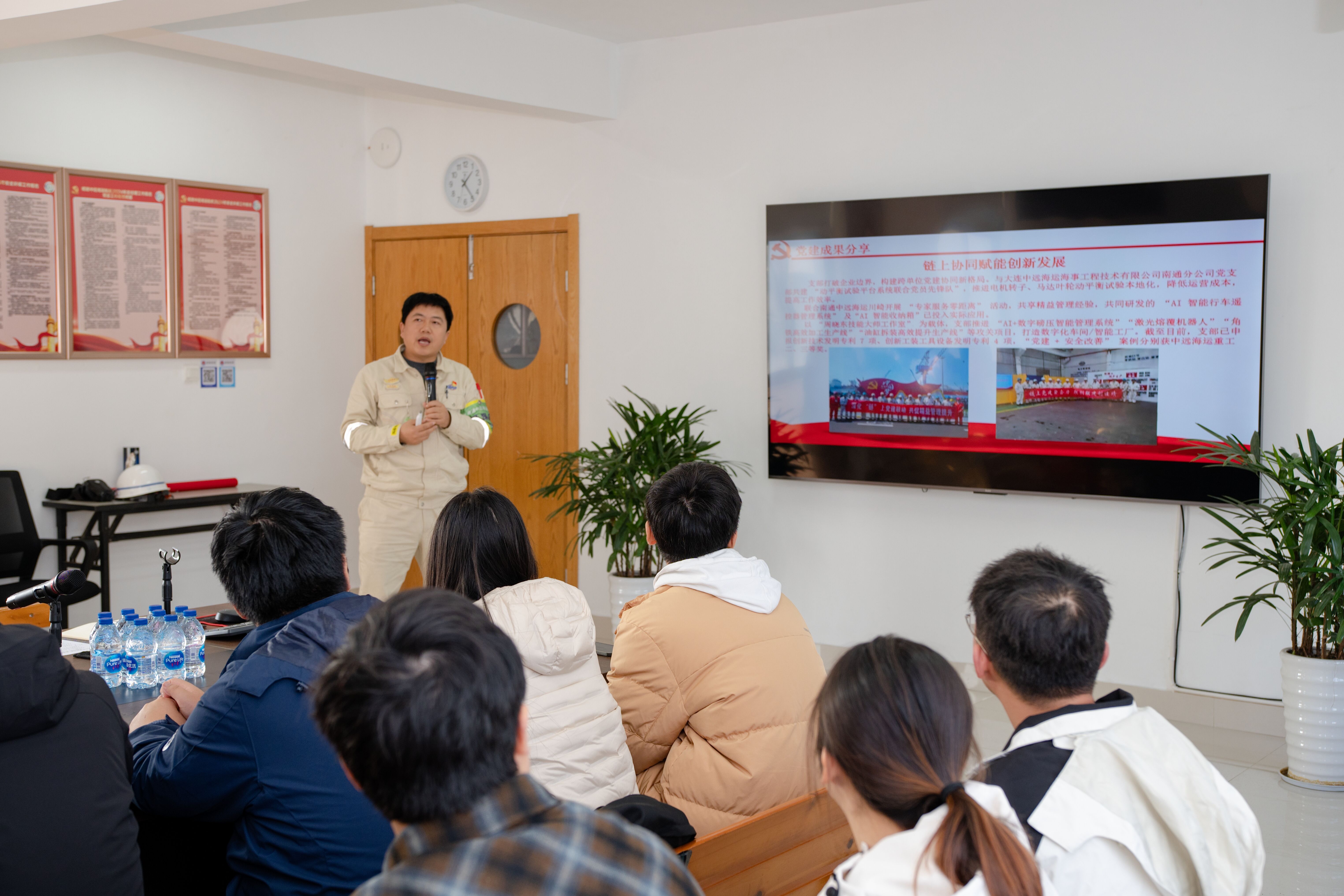 在南通中远海运船务工程有限公司机电车间会议室,学生党员认真聆听了机电车间党支部书记张海峰关于党建与业务工作融合”的专题党课。支部以精工智修为核心打造党建品牌,融合牛彩网与党建元素,开展了一系列富有温度、贴近实际的暖心工程,给在场师生留下了深刻印象,也为今后学生党支部的党建活动提供了有益借鉴。