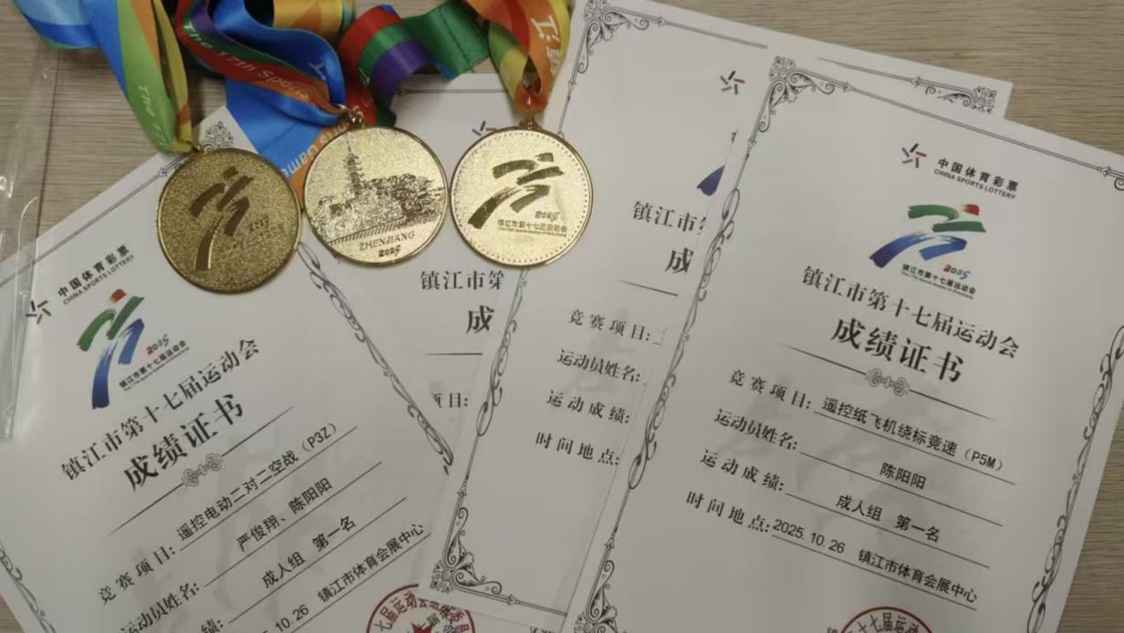 2025年10月26日,镇江市第十七届运动会群体部航空模型比赛圆满落幕,江苏科技大学海空航行器协会的参赛队员们凭借精湛的技术和稳定的发挥,在竞争激烈的成人组比赛中脱颖而出,勇创佳绩。其中,在遥控电动二对二空战(P3Z)项目中荣获第一名;小队成员陈阳阳在遥控纸飞机绕标竞速(P5M)项目中夺得第一名;成员严俊翔在遥控纸飞机绕标竞速(P5M)比赛中获得第四名。以上各种优秀的成绩,充分展现了我校学子在科技体育领域的卓越风采和扎实功底。