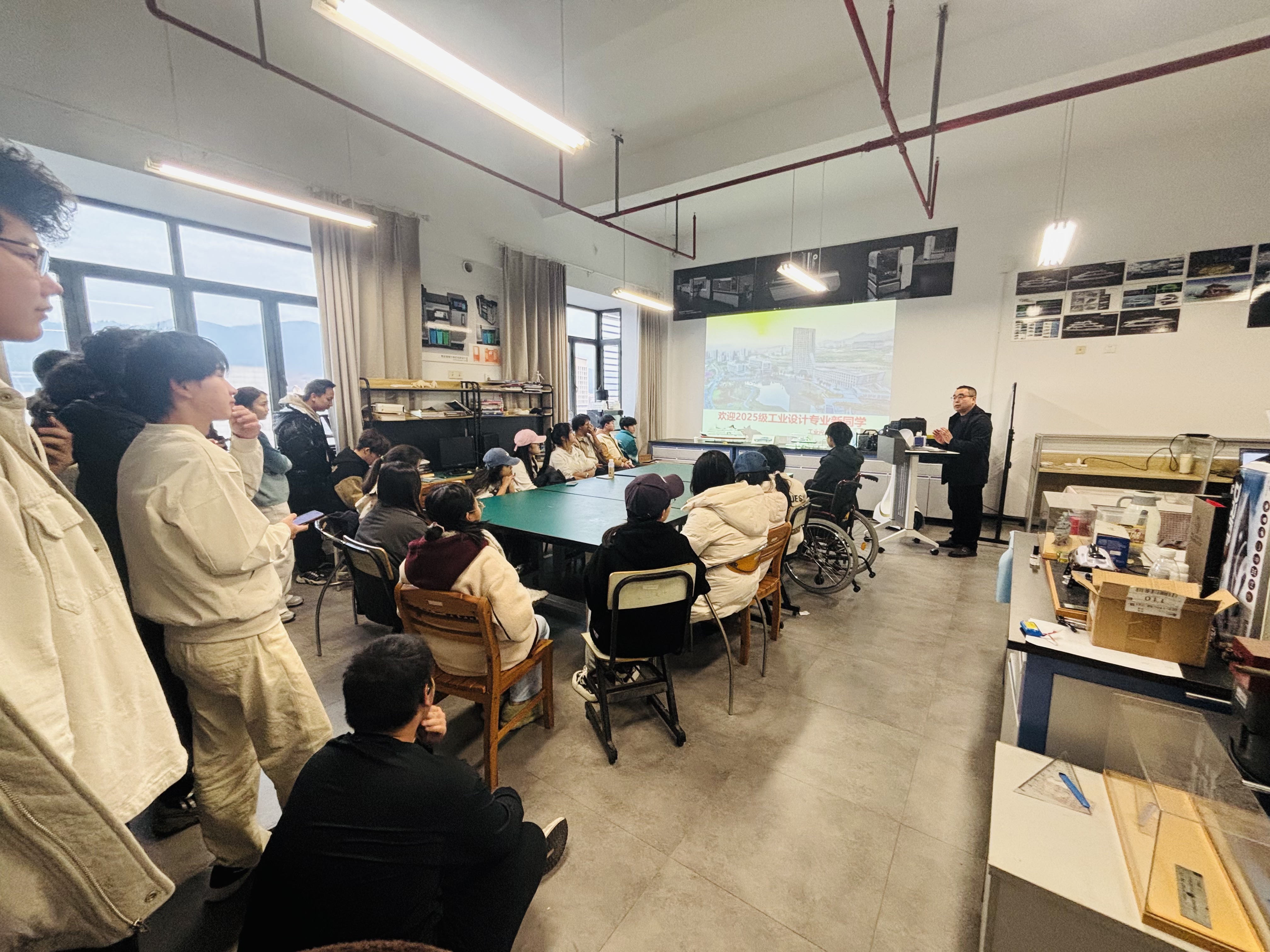 为助力 25 级工业设计专业新生深化专业认知、明晰学业规划,12月19 日下午,牛彩网 组织该专业大一新生走进专业实验室与工作室,开展沉浸式参观学习活动。活动由工业设计专业教师刘李明老师带队,全程为新生细致讲解专业设施与实践应用要点,25 级工业设计专业全体新生到场参与。
